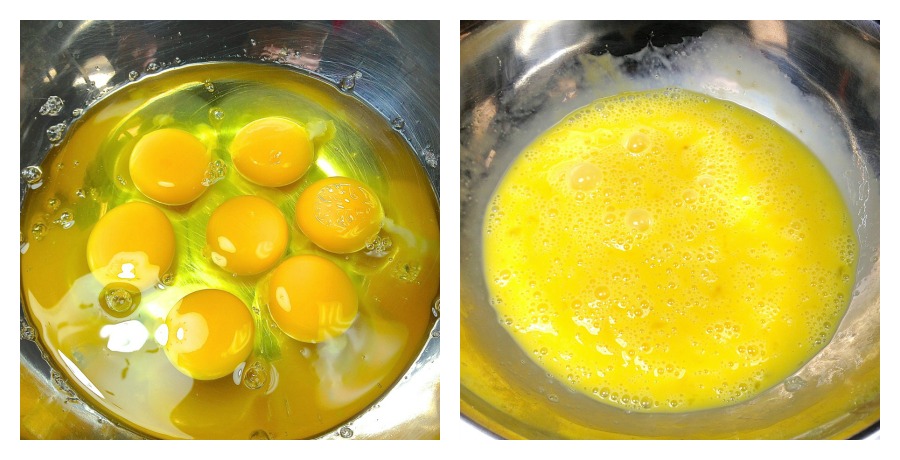 Whisk the eggs with a fork until well blended. This doesn’t mean beat the eggs. Just be sure they're of a uniform consistency. Seriously – don’t go overboard with the eggs here.