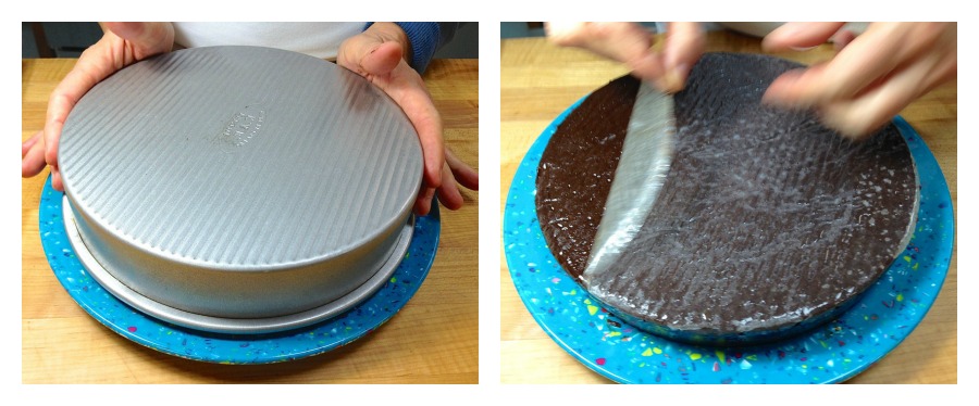 De-panning this cake can be a bit tricky, because it sometimes requires banging the pan upside down – which you probably don’t want to do on a beautiful glass or ceramic plate. Here's a technique that will spare your delicate plate.
