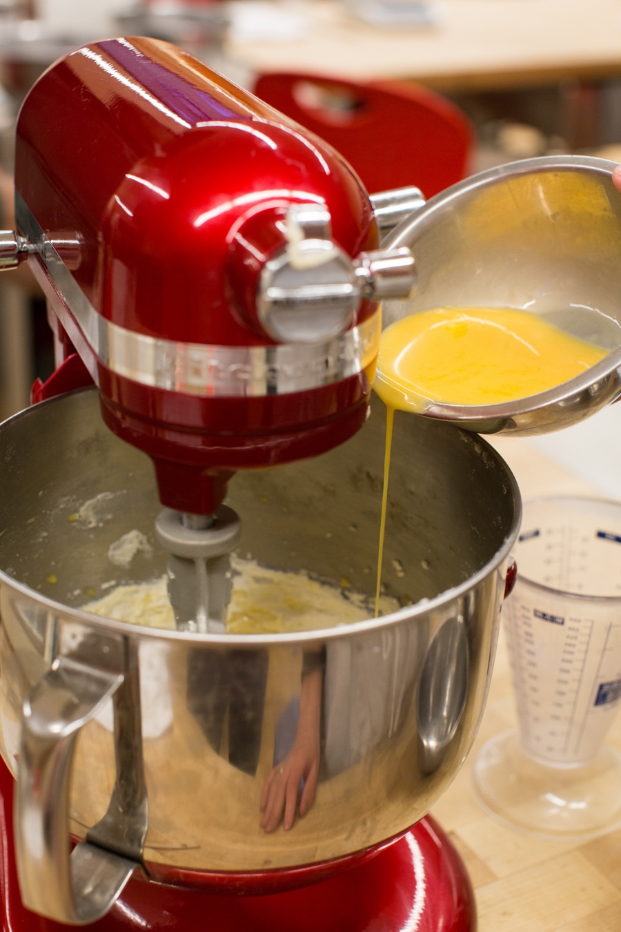 Crack the eggs, and whisk to combine. Slowly add them to the creamed butter.