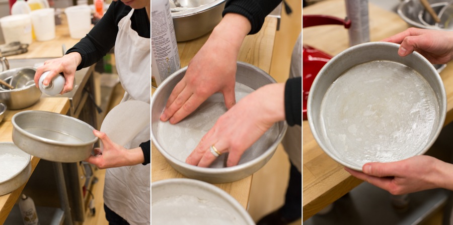 Let's make this cake. Butter or spray with pan spray two 8" round cake pans. Line the bottoms with parchment, and butter the paper. Dust with flour and set aside.