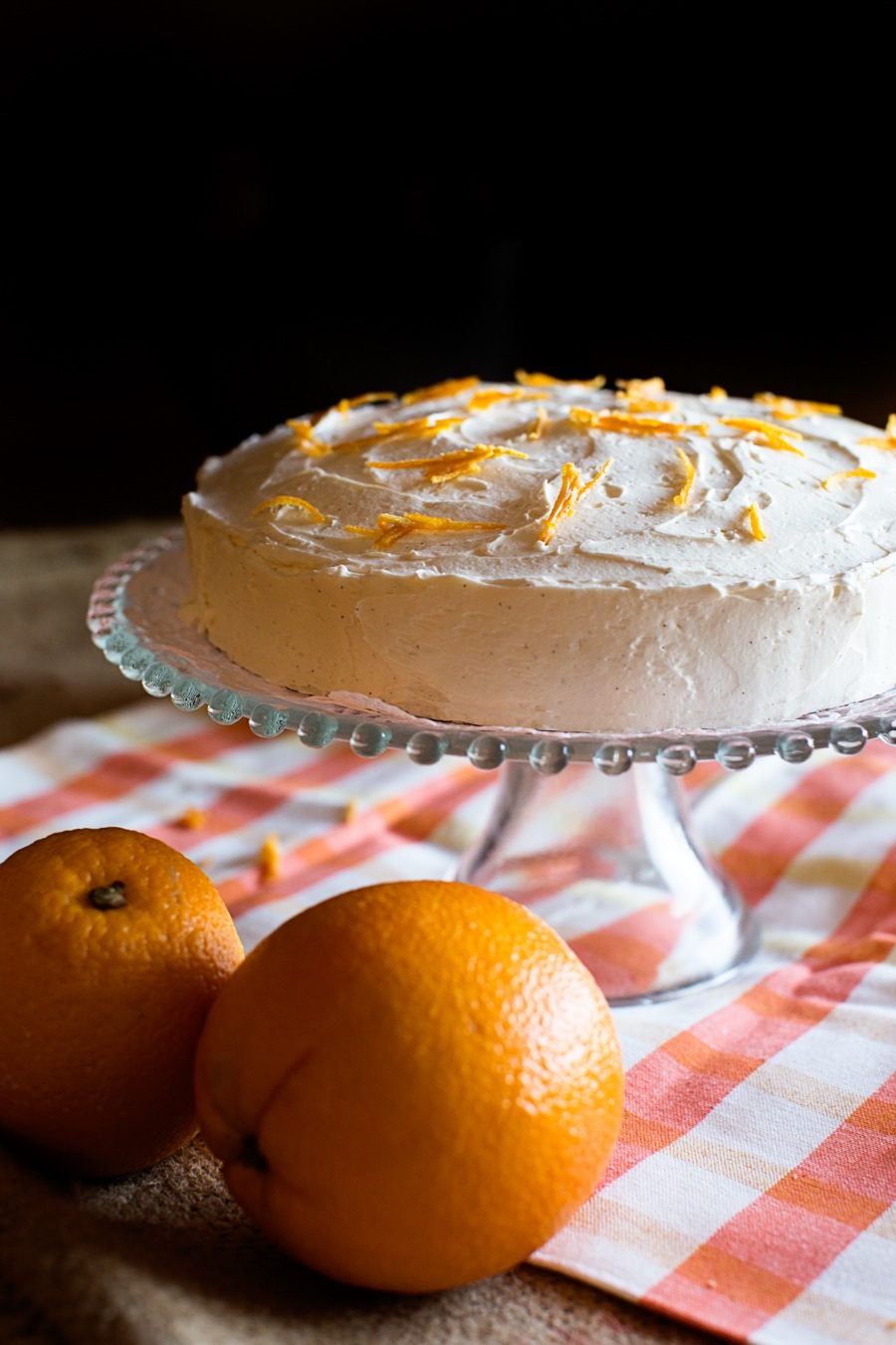 This is a simple cake that doesn't need much to finish. Try splitting a single layer in half and filling it with a thin layer of marmalade. Cover it with buttercream, and serve it at room temperature.