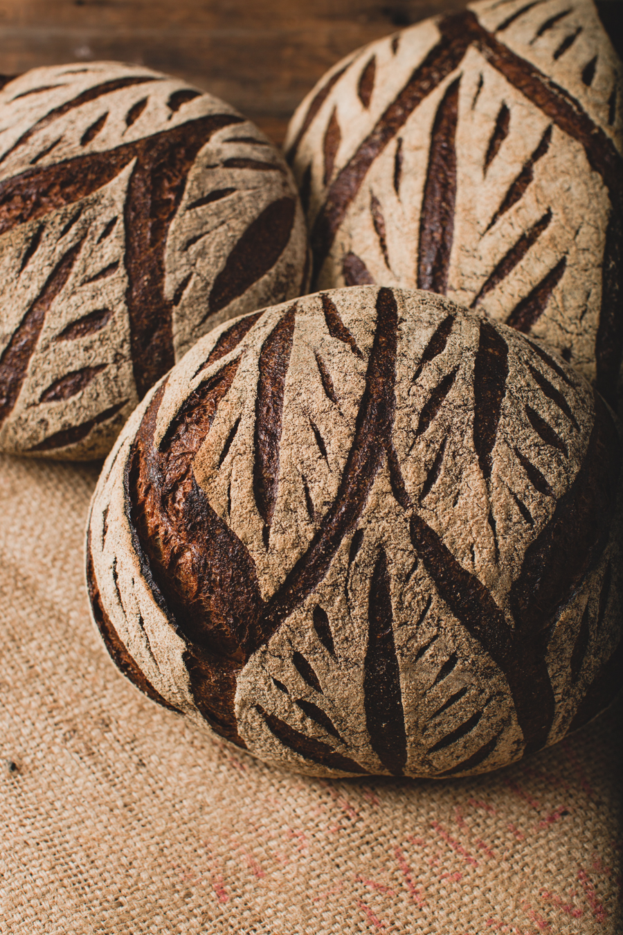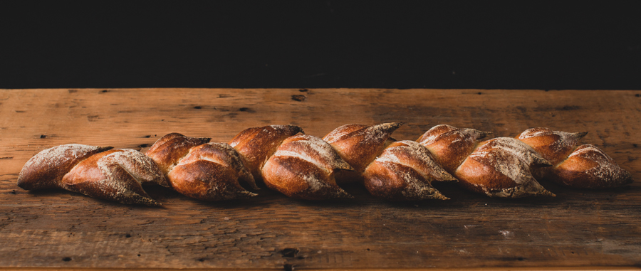 Named after a memory from Martin's youth, the Boxcar brims with Southern flavors – caramelized pecans, native flint corn, toasted rye berries, smoked barley malt, whiskey, and molasses make up the base of this hearty, flavorful loaf. Smoked Lapsang Souchong tea adds a hint of tobacco flavoring, pulling us deeply into the memory of a childhood spend in the South.