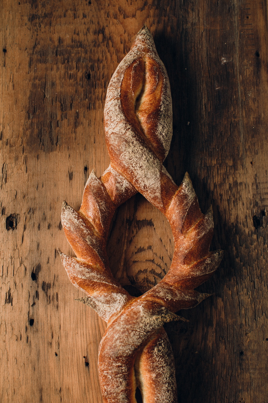 Flour. Water. Yeast. Salt. These four simple ingredients comprise the baguette. The fifth ingredient – time – makes this beautiful loaf. Decorative cuts and shaping add flair.