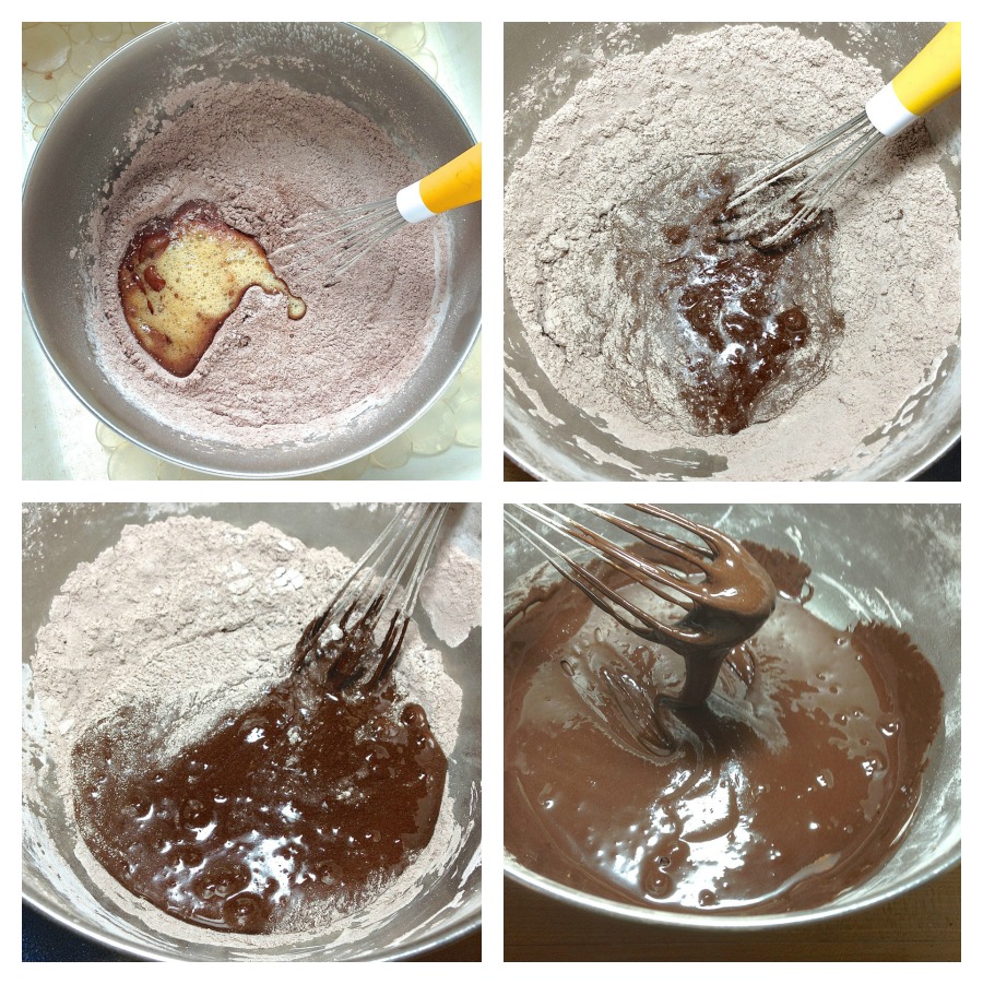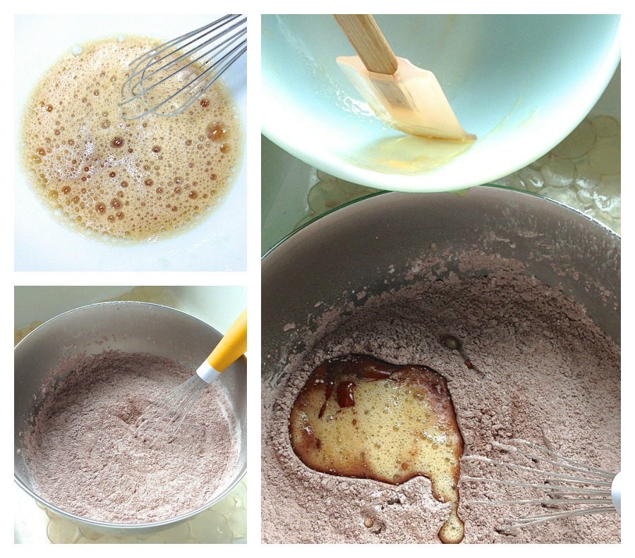 As you stir, you'll think, "This isn't happening. There's not enough liquid." RESIST the urge to add more egg whites, milk, water, or anything else. The mixture will seem terminally dry – until suddenly, within a few strokes, it becomes a thick, syrupy batter.
