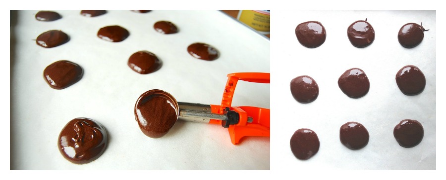 If you use Hershey's cocoa, be aware that your batter will be thicker than what you'll see pictured below; and the resulting cookies will be mounded, rather than flat/smooth.