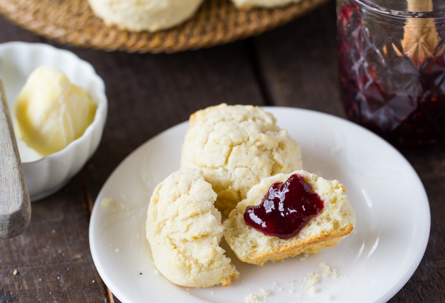As I often do, I used a tried and true gluten-based biscuit recipe and adapted it to be gluten-free. I chose our Never-Fail Biscuits (how could I not with a name like that?) and I only ended up having to make a few small tweaks to the original. I swapped our gluten-free flour for the regular flour; added an egg, and also some baking powder – but the method was the same. The result was spectacular. Next up is trying these beauties with some berries mixed in!