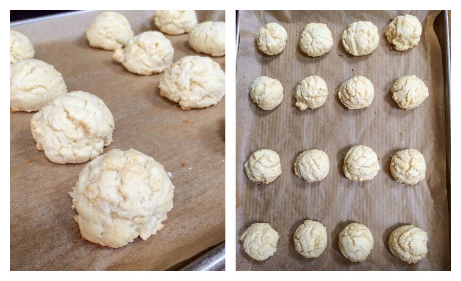 Using a tablespoon-sized cookie scoop (you can go larger if you want, they just might have to bake a bit longer), scoop the dough onto the parchment-lined baking sheet. The dough balls will be slightly larger than a ping pong ball.