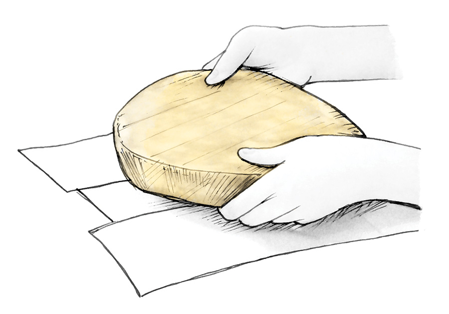 Patience makes perfect. Take the time to chill or freeze your baked layers before assembling the cake. The layers will be less fragile, and you'll have more control and better results with frosting. While they're chilling, line your serving plate with 2" to 3" wide strips of parchment paper.