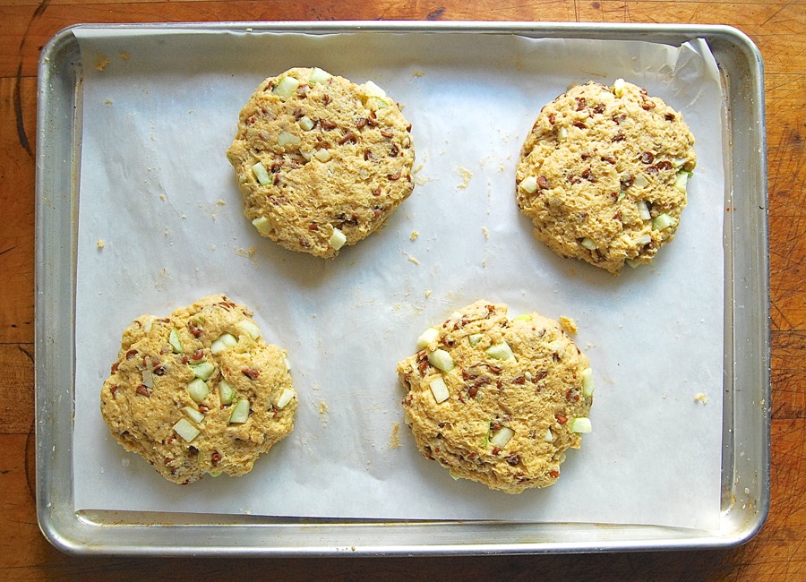 Maybe you even have a scone pan, and you divide your dough and pat it, piece by piece, into the wells of the pan.