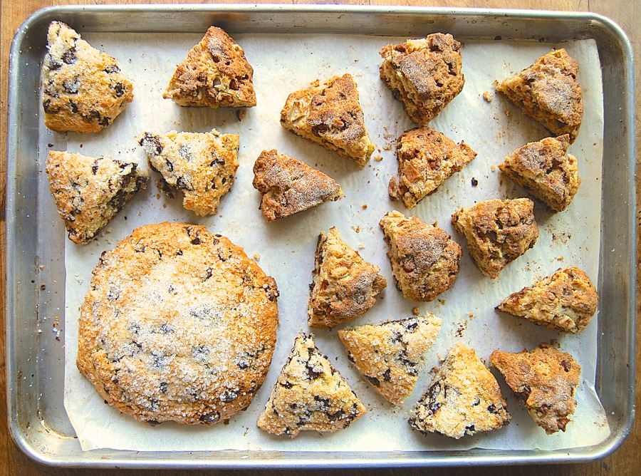 OK, some of them aren't the most gorgeous examples of sconedom you've ever seen. But they're moist and tender, and the same thing that might make them problematic to cut into perfectly shaped wedges – lots of chips, fruit, nuts, etc. – makes them all the more taste-tempting.