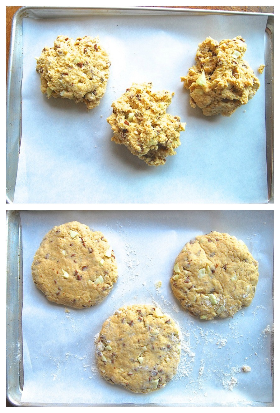 Attention, worry-warts: this is neither rocket science nor brain surgery. Maybe your rounds are a bit larger, or somewhat smaller. Maybe they're not quite 3/4", or a touch over 1" tall. No worries. Bake the scones and see how you like them. If they're too large or too small, make a note to yourself and divide the dough differently next time.