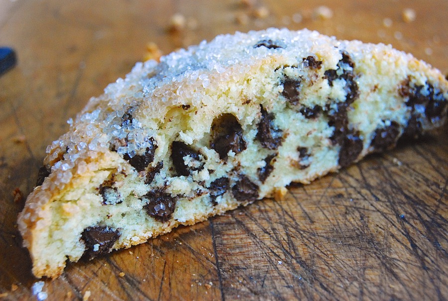 Look at those chocolate chips! You wouldn't get that tantalizing meltiness in scones that were individually shaped before baking.