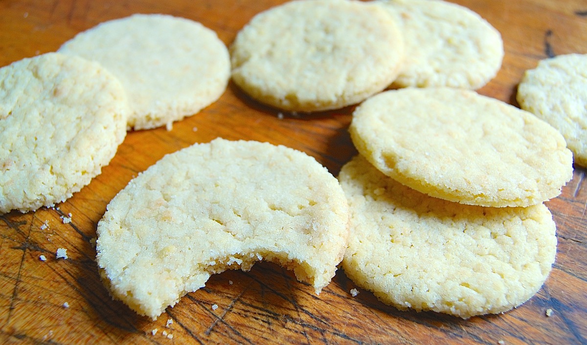 So, how did the test work? I made our basic recipe for Sugar Cookies, a recipe that results in a typical flat, palm-sized sugar cookie that, depending on how long you bake it, the weather, and how you store it, will be a bit soft with crisp/crunchy edges; or soft all the way through.