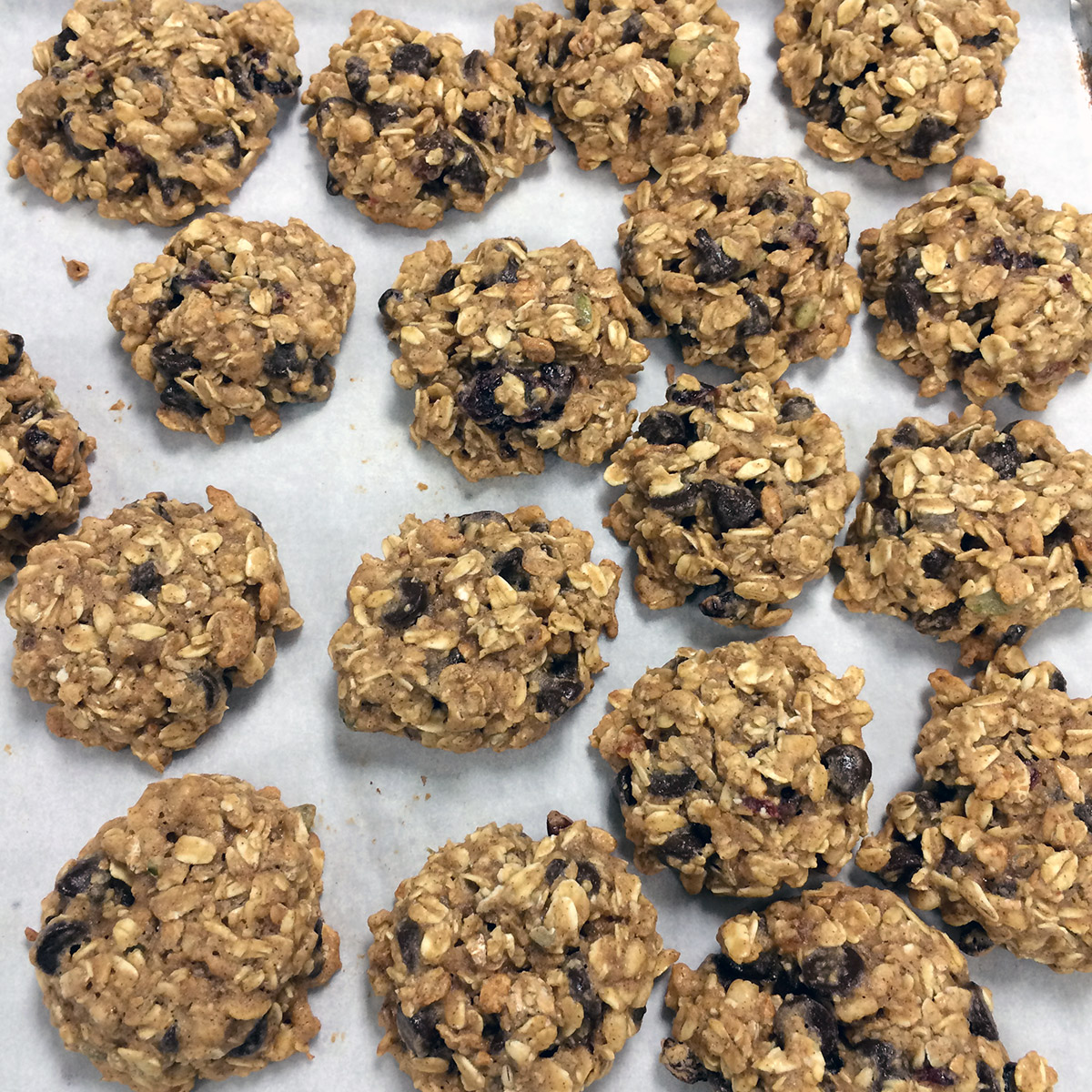 That brought me to my second favorite cookie: oatmeal raisin. I could make an oatmeal-type cookie that's healthier than the typical butter-and-sugar-filled version. Fill it with whole grains, nuts, and dried fruit – perfection.