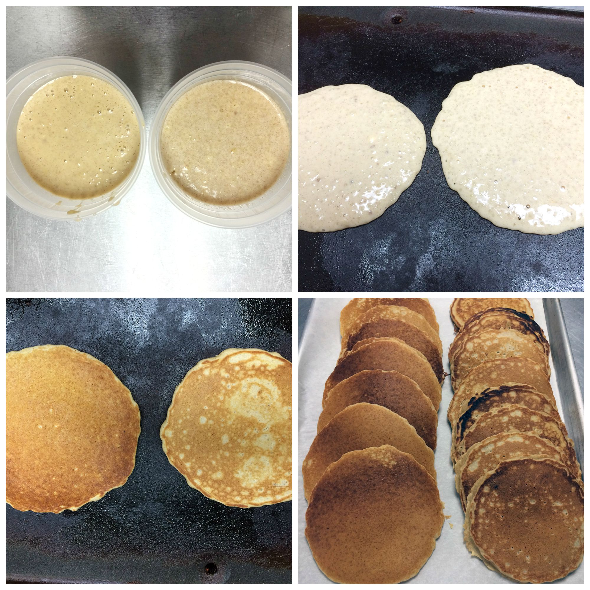 Saturdays are often pancake days in our home: a great chance to enjoy a mellow morning before starting the weekend activities. It's our splurge day. My husband and I have been running and boot camping our buns off all week and it's the day to treat ourselves to a little comfort food.