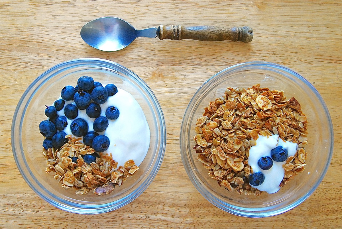 If you're watching your waistline, consider granola a garnish, rather than the main event. A big bowl of low-fat yogurt, lots of berries, and a couple of spoonfuls of granola? YUM! And many fewer calories.