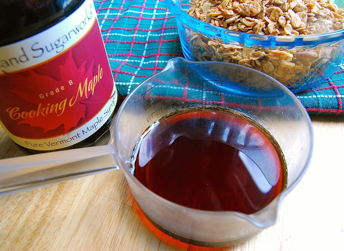 We use all-natural, 100% pure maple syrup to sweeten granola. While its flavor is mild, its sweetness is potent; substituting artificial maple syrup leaves granola tasting flat and bland.