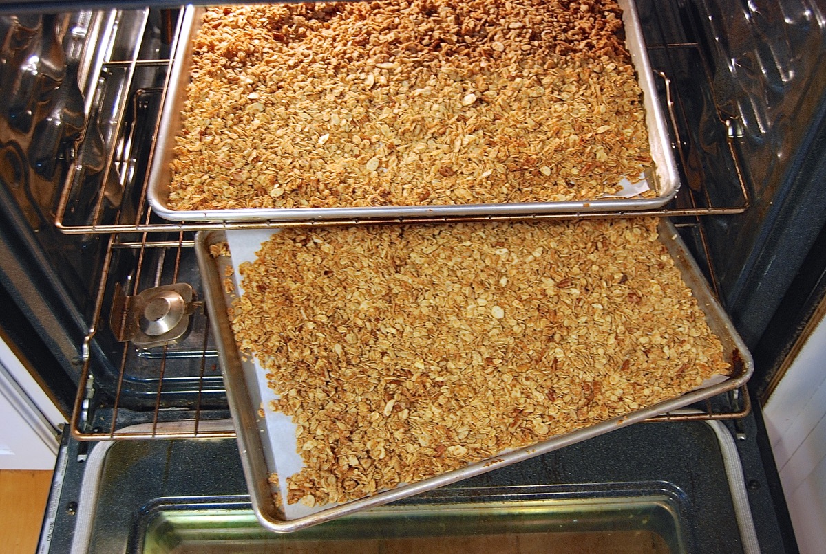When the granola is a medium golden brown, remove it from the oven and cool completely on the pans.