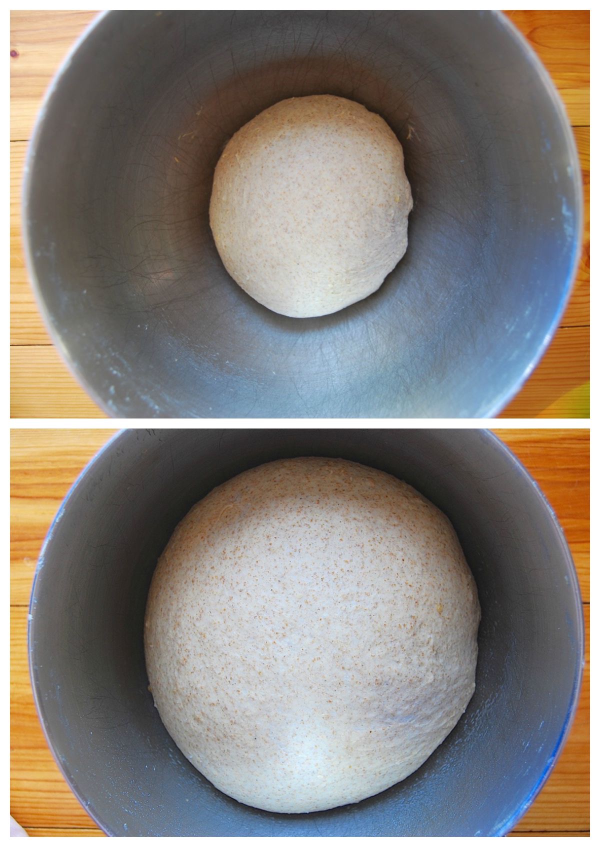 Shape the dough into a ball, place it in a lightly greased bowl, cover the bowl, and let the dough rise, covered, for 1 hour. It should become nice and puffy. If you're using your bread machine, simply let it complete its dough cycle.