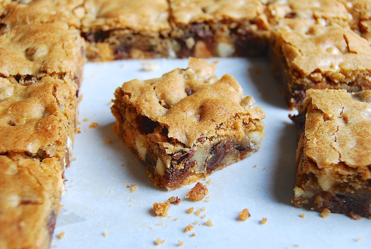 Anyone who loves bars or chocolate chip cookies will love these. It’s an impressive-looking dessert, but also a nice change from a classic blondie or brownie.