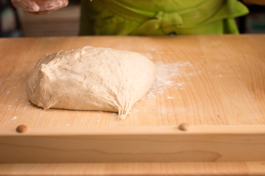Now we're ready to preshape the loaf. Preshaping allows the dough to begin to think about being a loaf.