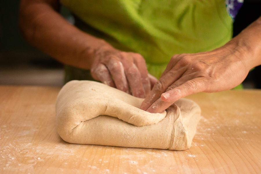 Folding is a simple step that develops the strength of your dough with very little effort. Artisan bakers know that both the dough and the baker can benefit from doing the least amount of work necessary to bring the dough to readiness.
