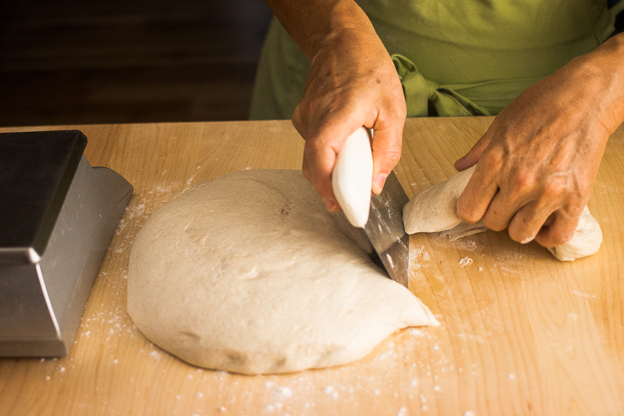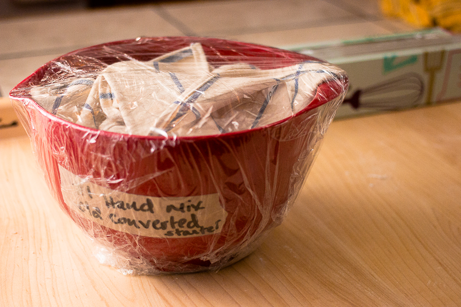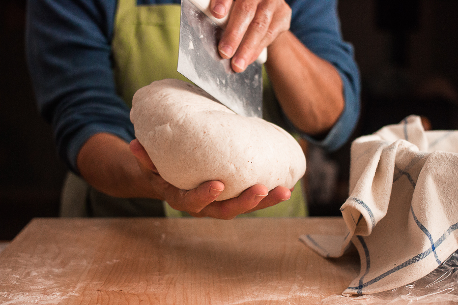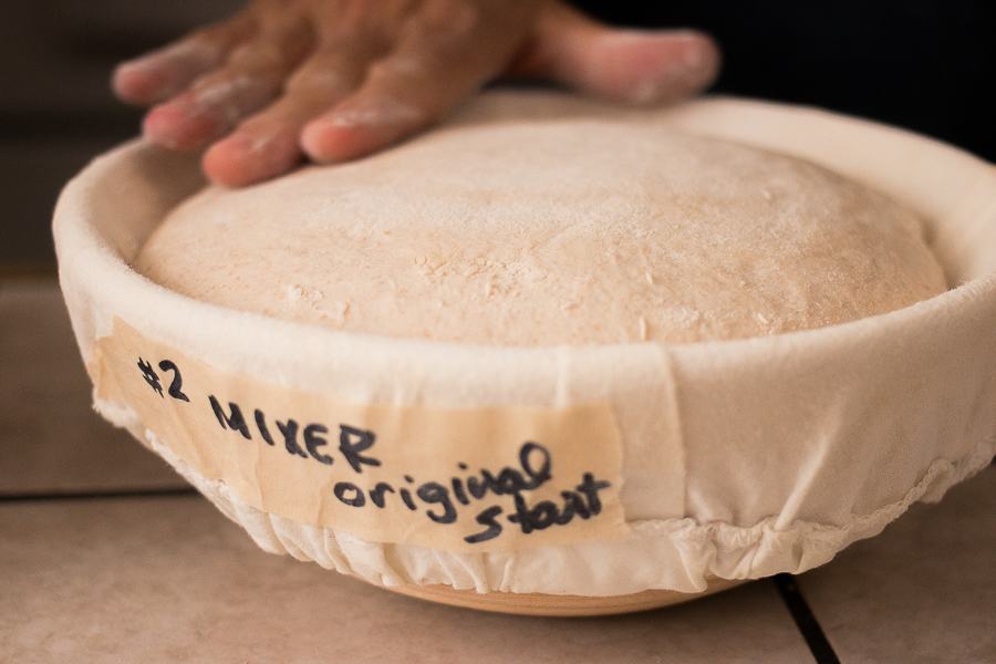 If you haven't been following our sourdough baking adventure, yesterday we explored a new type of sourdough starter – a "stiff starter," one with double the normal amount of flour. We went over how to convert your liquid sourdough starter to a stiff starter, and began working on a sourdough recipe that calls for this starter and is entirely naturally leavened (no added commercial yeast).