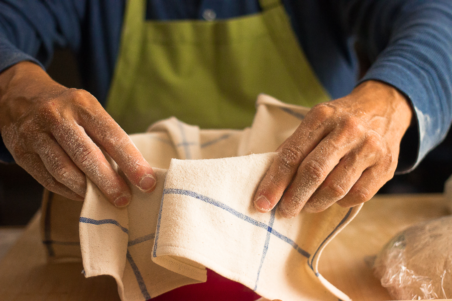 Since the loaf will be placed upside down in the basket, it’s helpful to let the loaf rest on the table for a minute or two after shaping, so the seam on the bottom is thoroughly sealed.