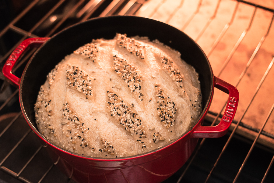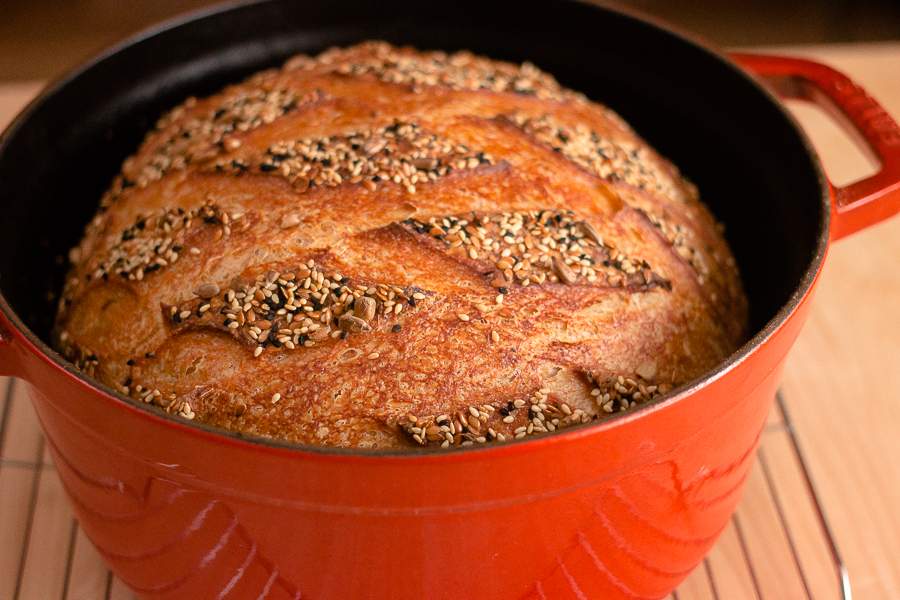 With either method if you find that your loaf isn’t browning enough on the sides and bottom, it's fine to finish the bake outside the pot, directly on the oven rack.