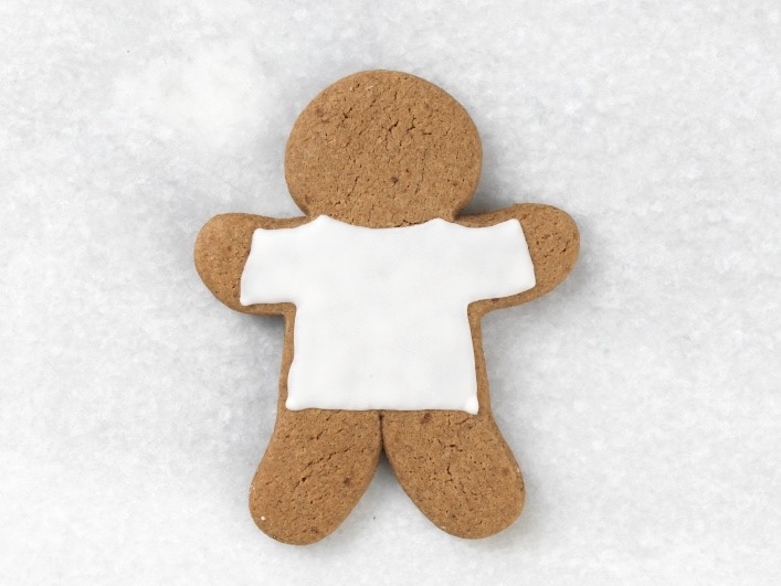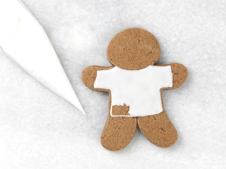 Flooding is one of the most basic techniques and can look great on its own, as well as combined with other techniques; so let’s start here. We’ll create a nice smooth white base for the jaunty plaid on this gingerbread man’s sweater.