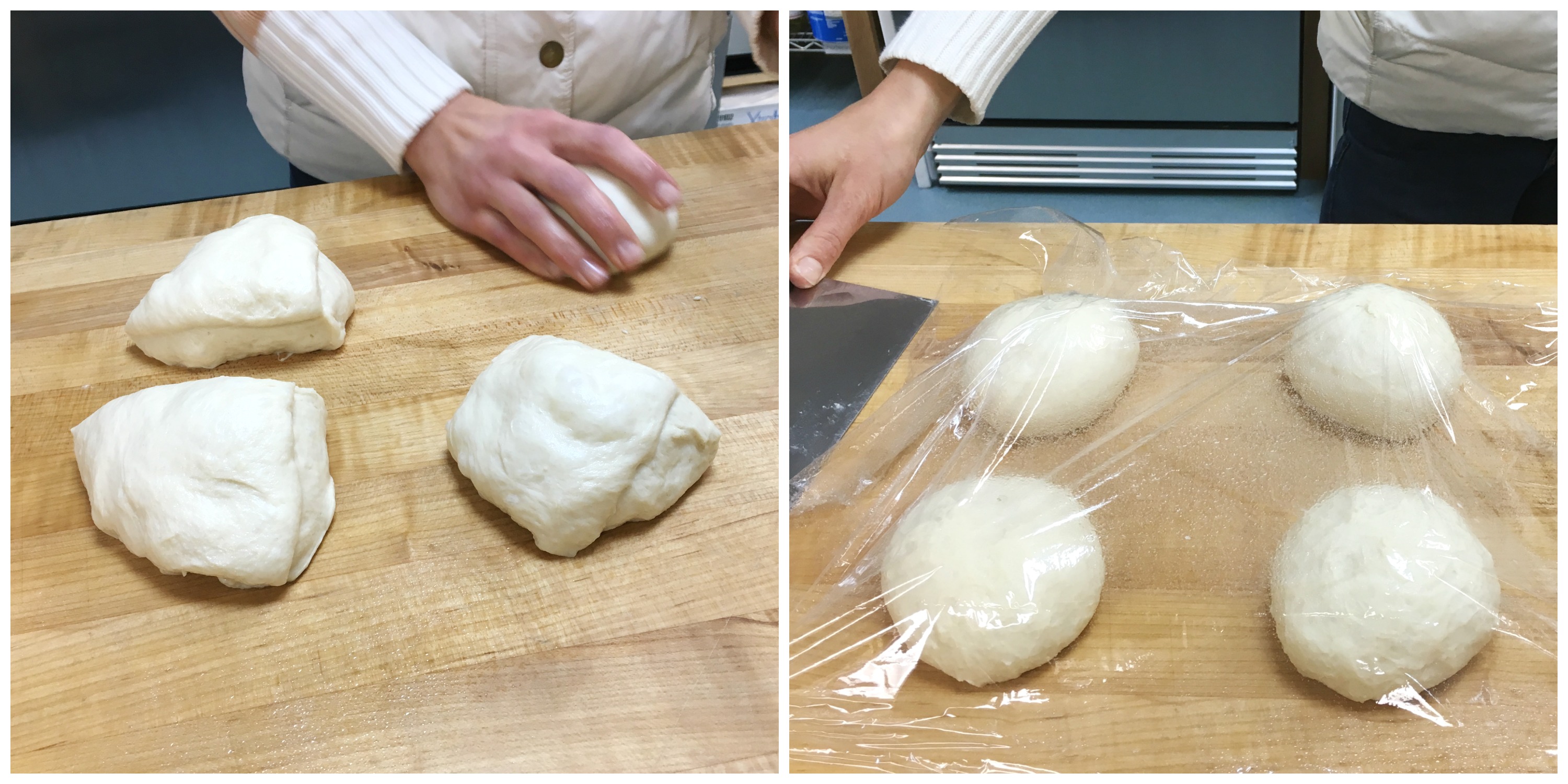 Gently deflate the dough, and divide it into four equal pieces. Shape each piece into a ball, cover the balls, and allow them to rest for 15 minutes.