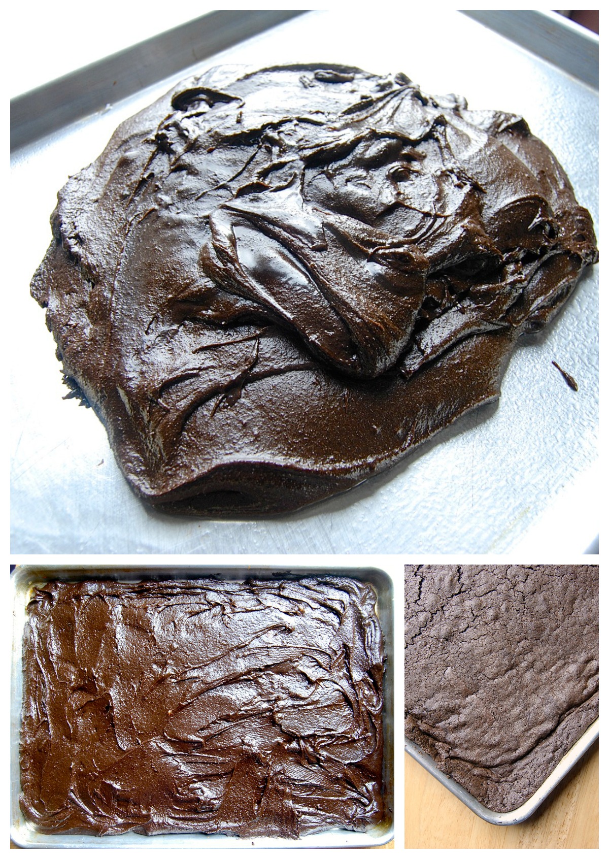 Doubling that high-rising brownie recipe and sticking it in a half-sheet pan offers the potential – nay, the likelihood – of half-baked batter bubbling over the 1" sides of the pan onto the oven floor. NOT a pretty picture.