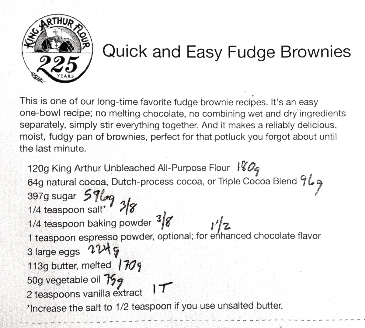 Easiest math? Metric. I consult the gram weights in our recipe, and from there, it's simple to increase everything by half.