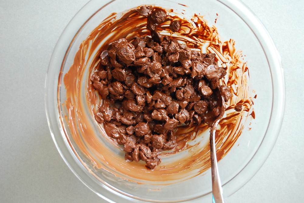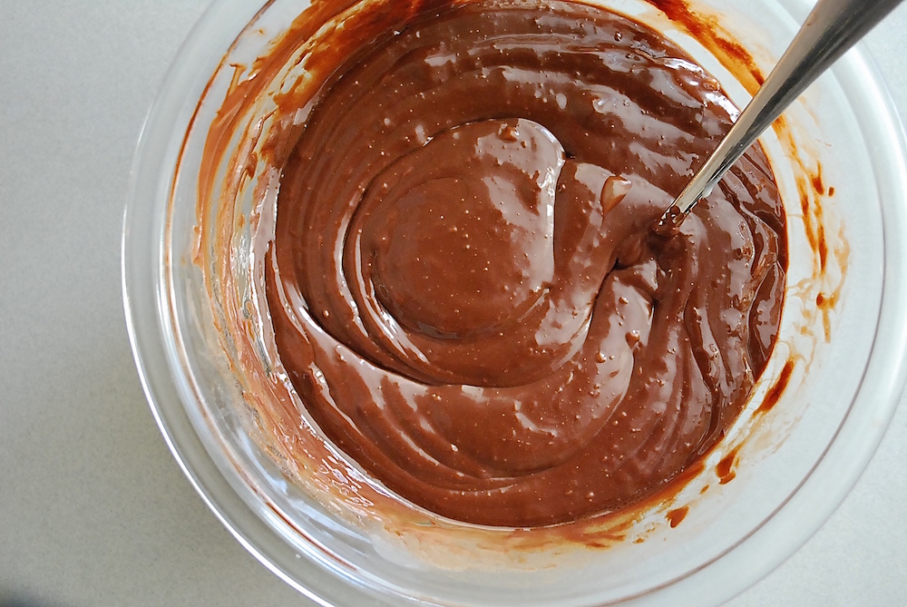 Cut the butter into small chunks and scatter it on top of the chocolate mixture. Microwave until the butter is melted, then stir to combine.
