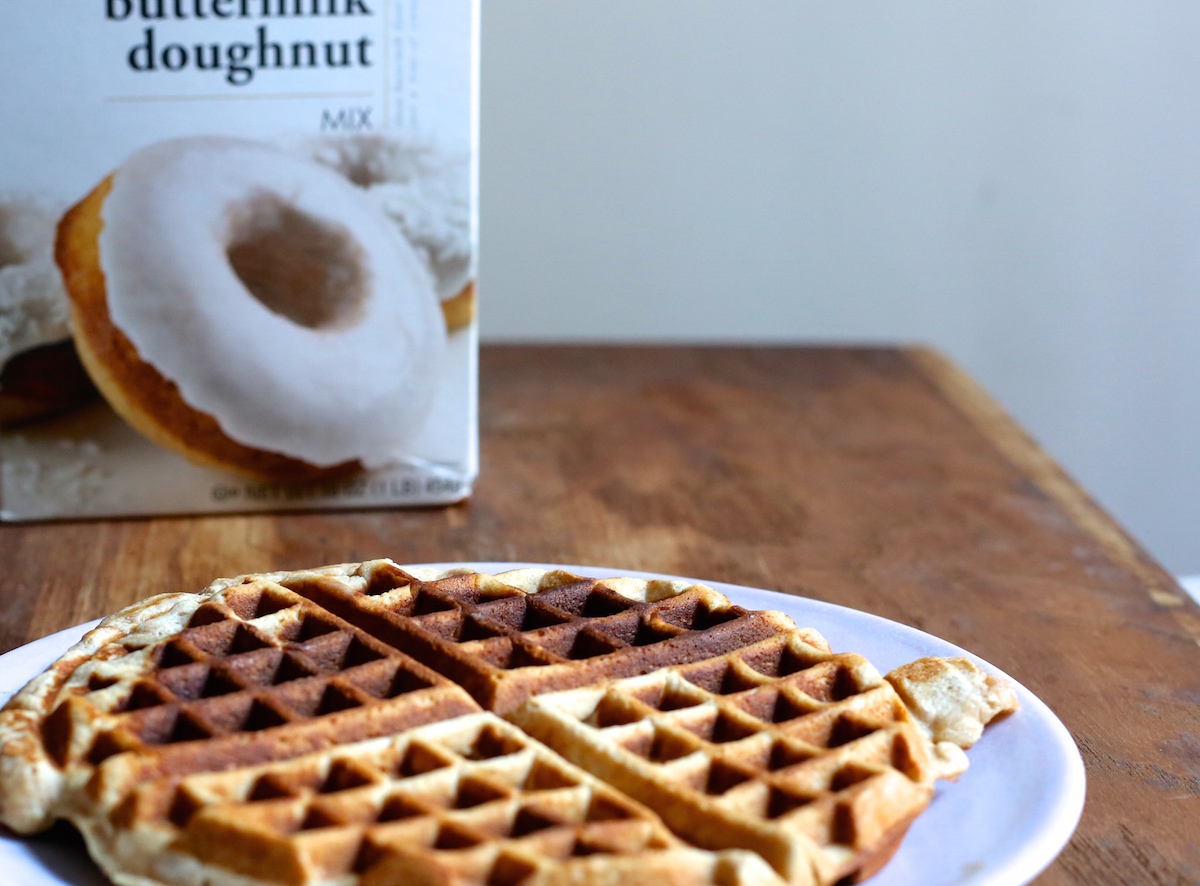 Doughnut batter performs surprisingly well in a waffle iron. It bakes up into a puffy, light disc with a wonderfully crunchy top. I used our Buttermilk Doughnut Mix, which worked like a charm. Sure, it's not shaped in a circle, but it tastes just the same.
