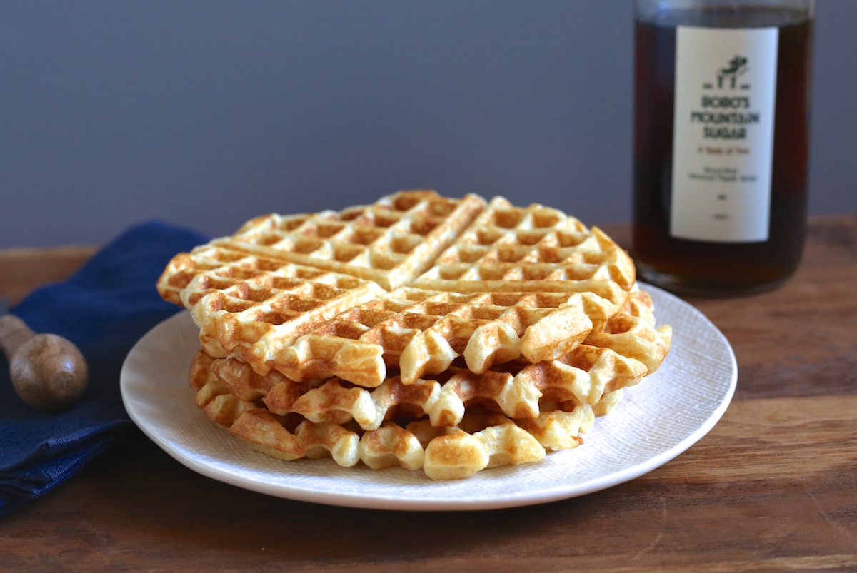 Let's start with the obvious: waffles! My favorite quick and easy recipe is our Classic Buttermilk Waffle recipe. It yields a light, delicate, and crisp waffle that's easy to turn savory (just omit the sugar). The recipe calls for an optional 1/4 cup of almond flour, which I recommend. The almond flour adds a bit of nuttiness and texture.