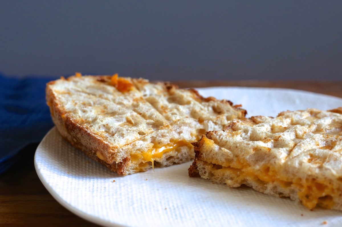As I mentioned, you can think of a waffle iron as really just a textured (read: more awesome) panini press. Thus, it should come as no surprise that your waffle iron is ideal for grilled cheese sandwiches.
