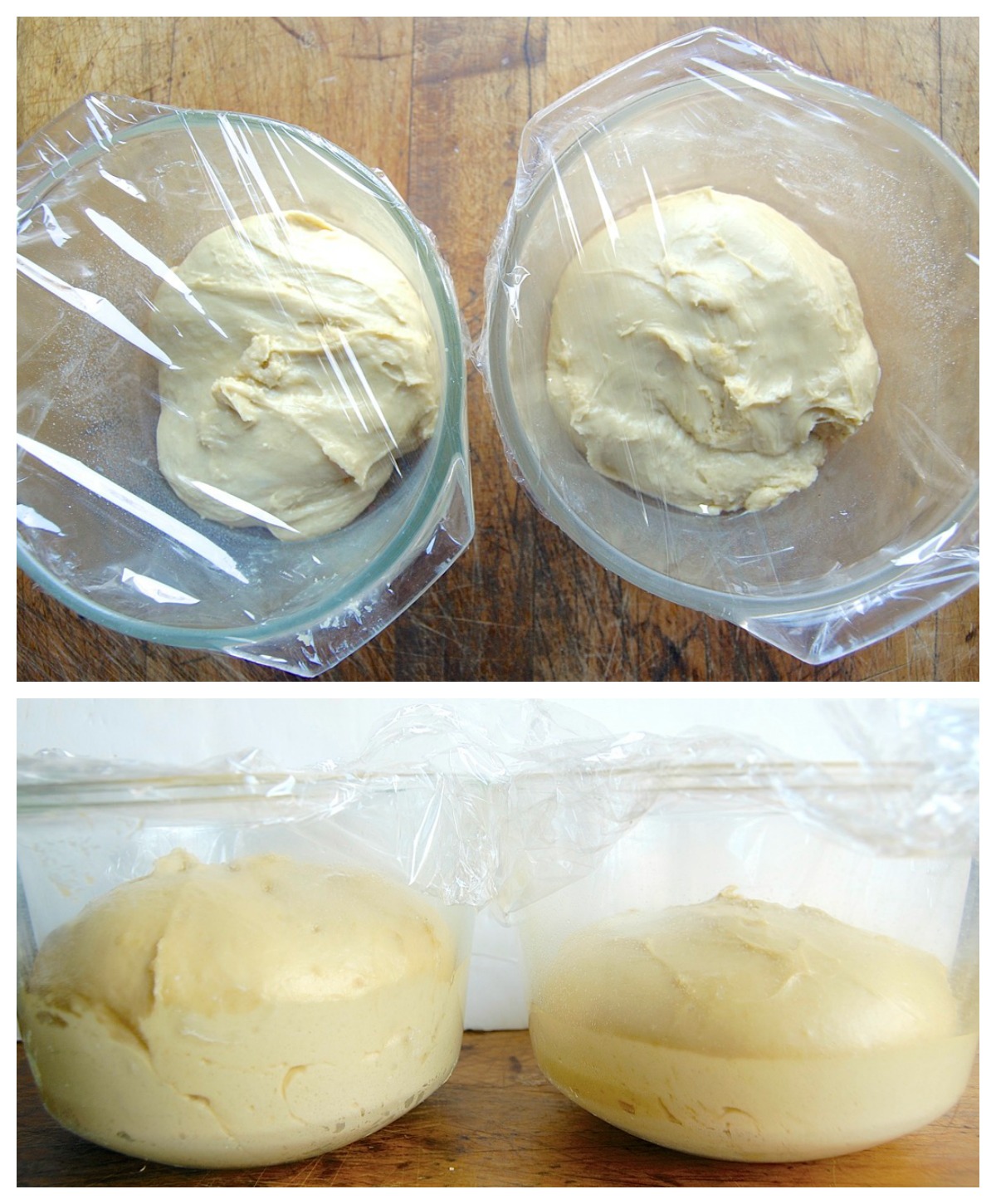 Here are the two doughs just after mixing (top), and 90 minutes later (bottom). That's SAF Gold on the left, SAF Red on the right.