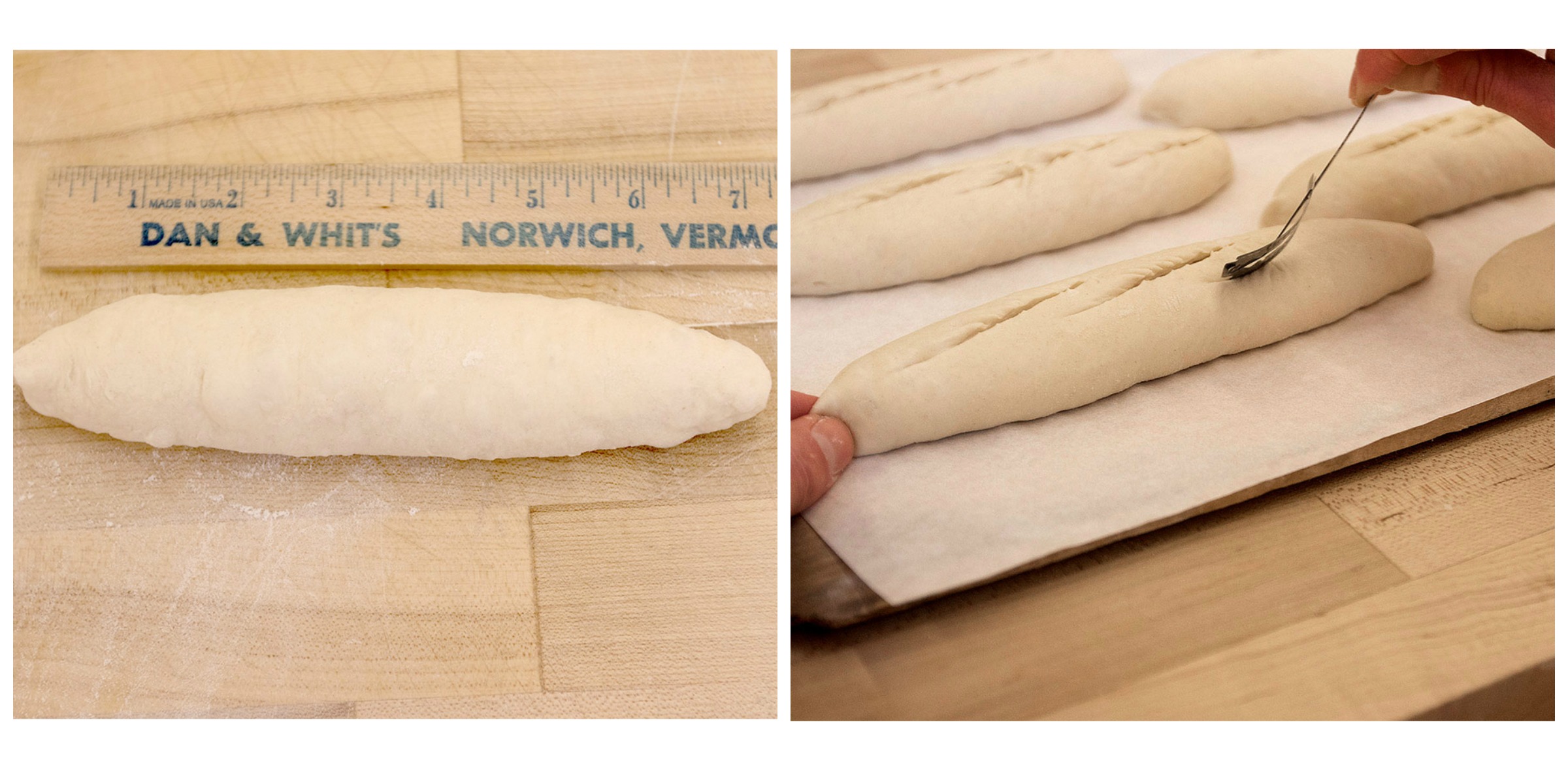 Divide the dough into six pieces. Shape each piece as you would for a classic baguette, rolling them into 7"-long loaves.