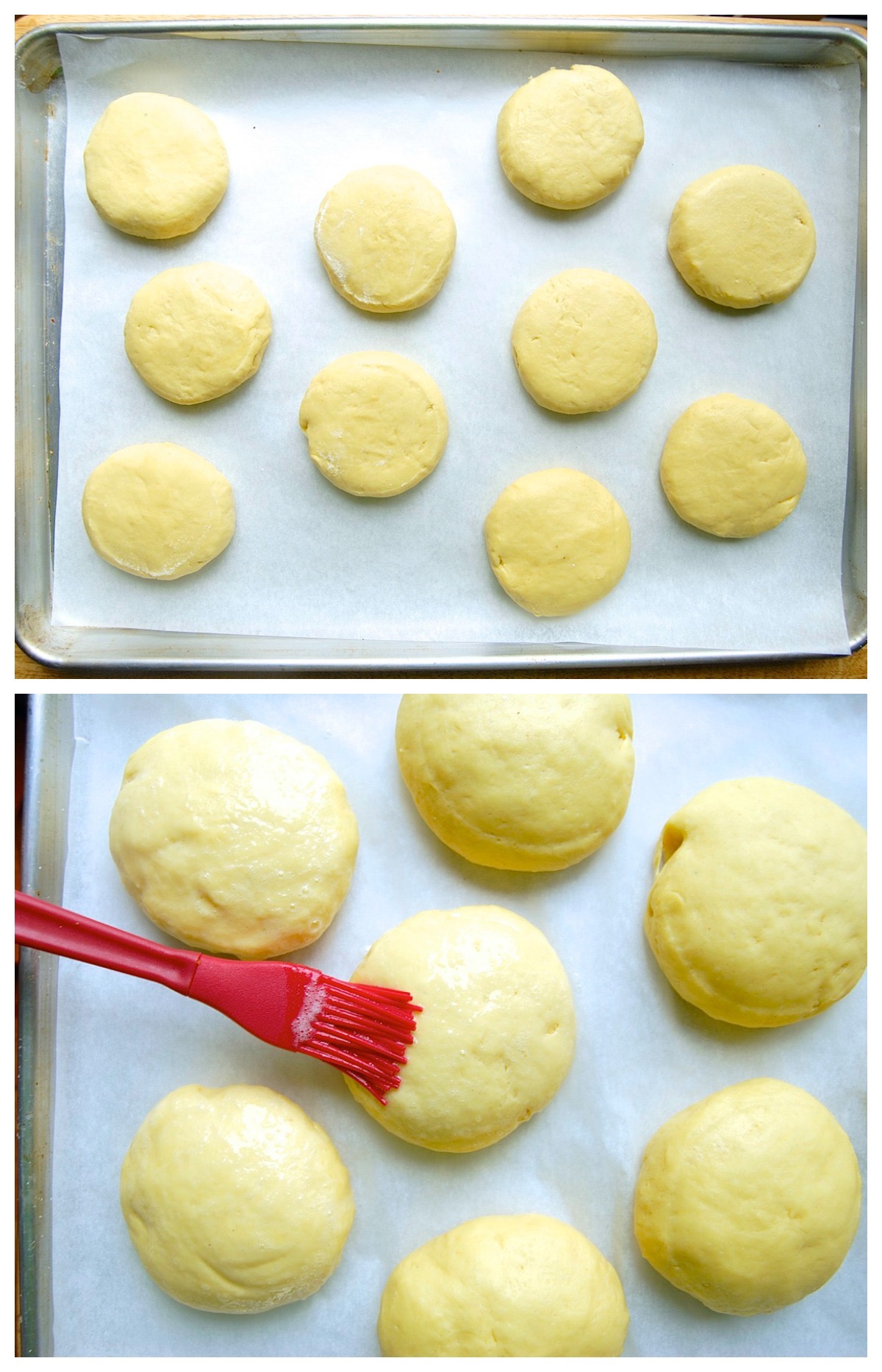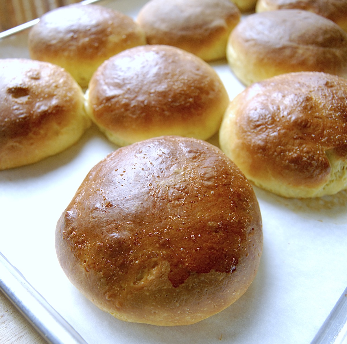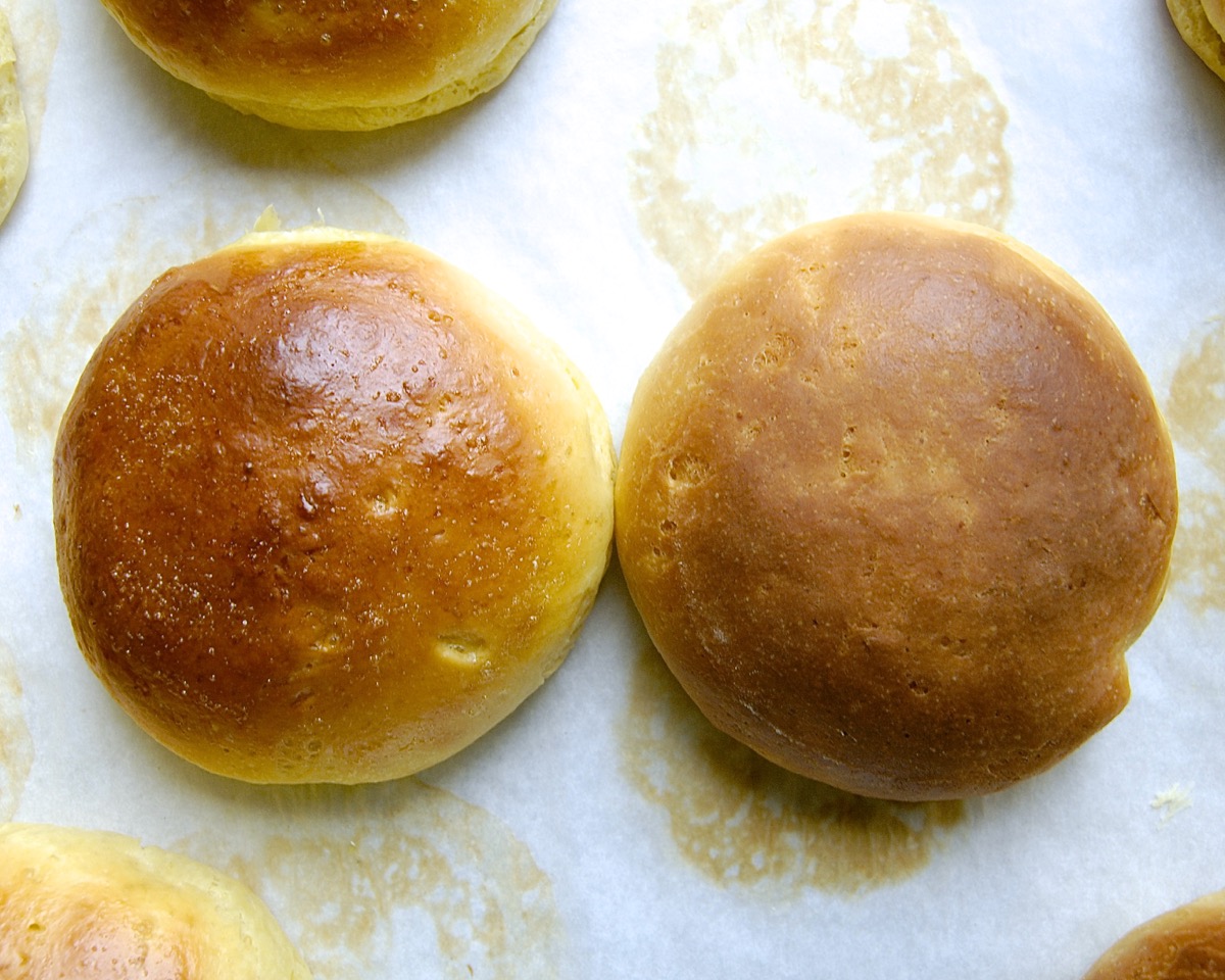 Note: As these buns cool, they stiffen up considerably, the result of the butter and cheese both solidifying back to their natural firm state. I like to reheat the buns just before serving, either with or without their sandwich filling.