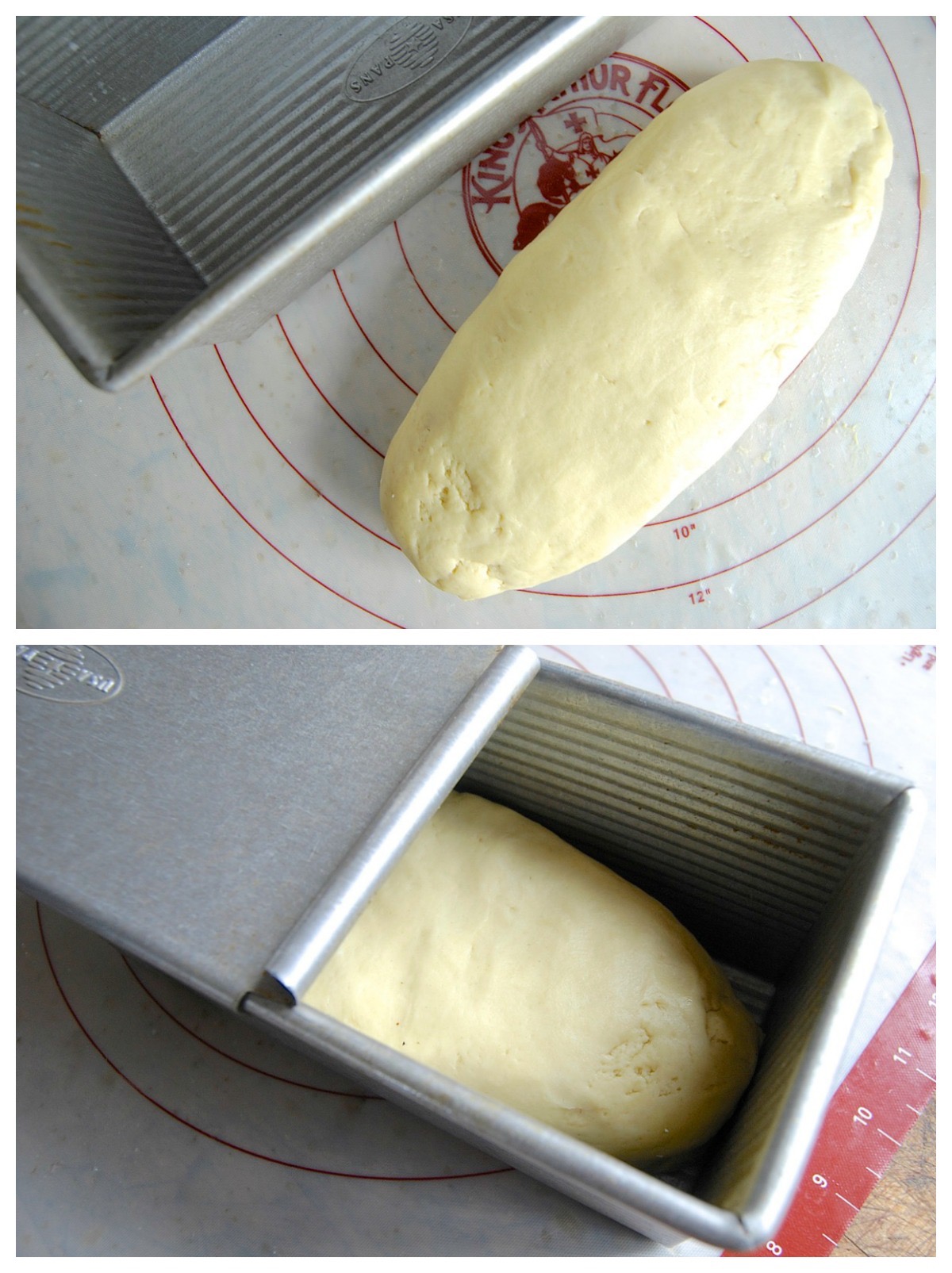 The dough for these Cheese Brioche Buns fits very nicely in a 9" x 4" pain de mie pan.