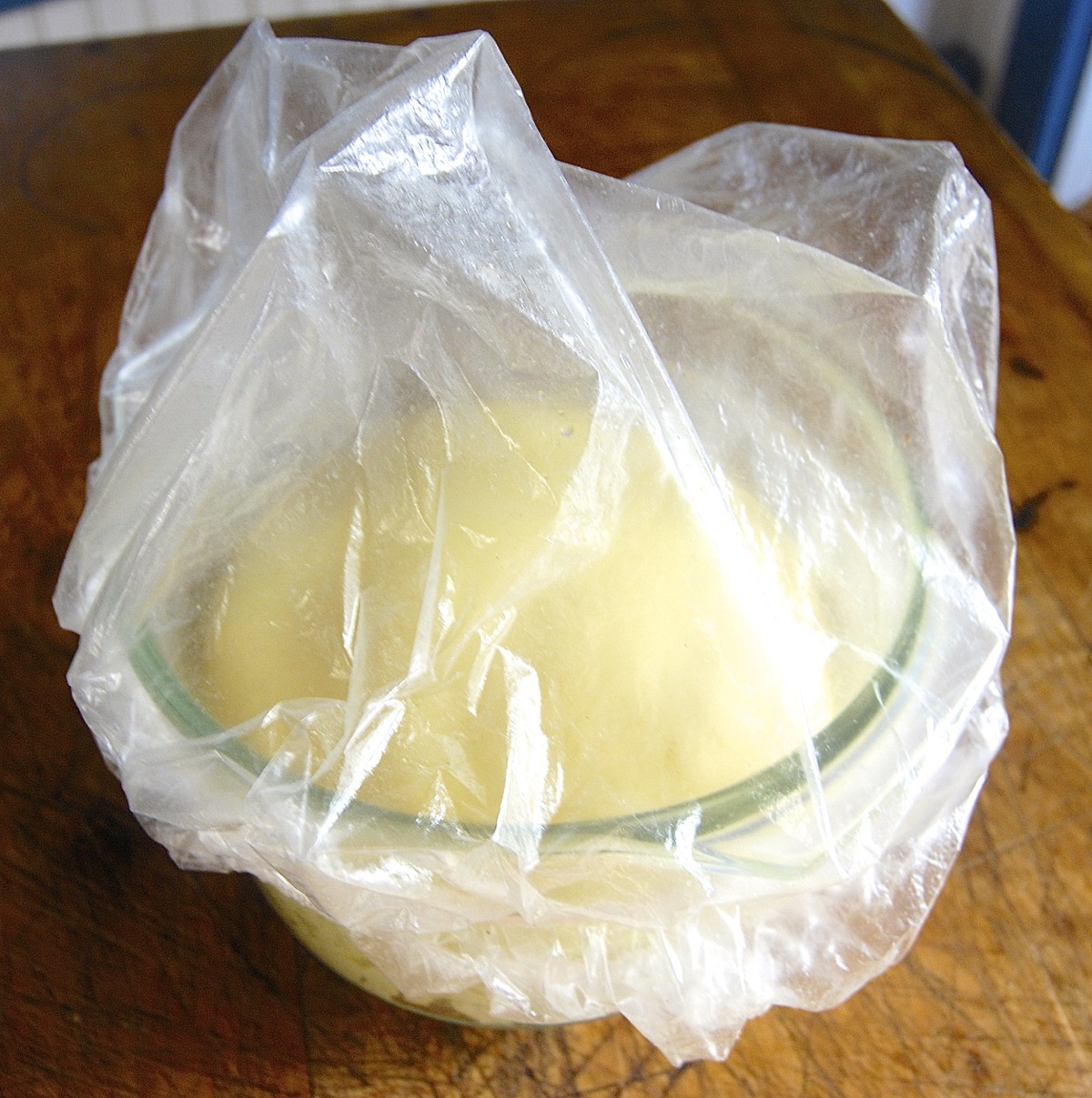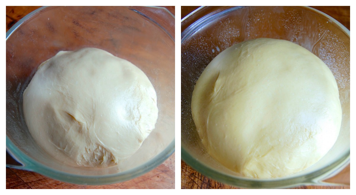Cover the bowl again – I keep a good supply of clear shower caps handy for just this purpose – and refrigerate the dough overnight. This will make it easier to shape, and yield smoother buns.