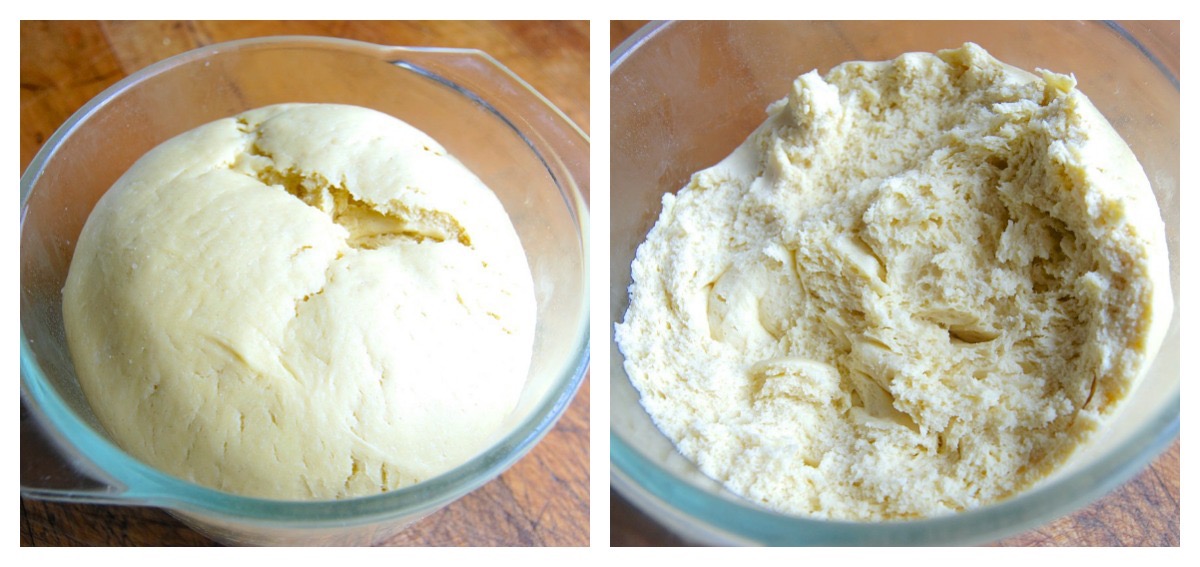 Notice its texture; this is unlike the typical yeast dough you might work with. Instead of being smooth and silky, it feels like modeling clay. Rather than stretch when you grab it, it breaks. Don't worry; this is fine.