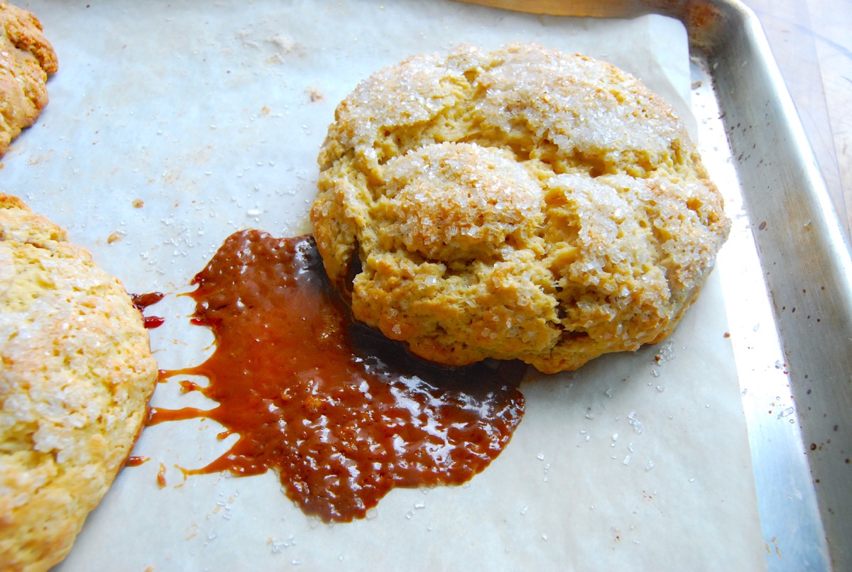 But honestly, there was no reason for caramel to drain out of the bottom of this filled scone. I mean, it was enclosed in dough. It was solid caramel when it went into the oven.