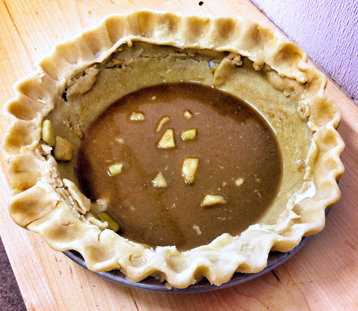 Well, I made the crust and added the apple filling, and then realized I'd forgotten one essential element in the crust, something that negated the test. But I didn't want to waste the filling, so I took it out.