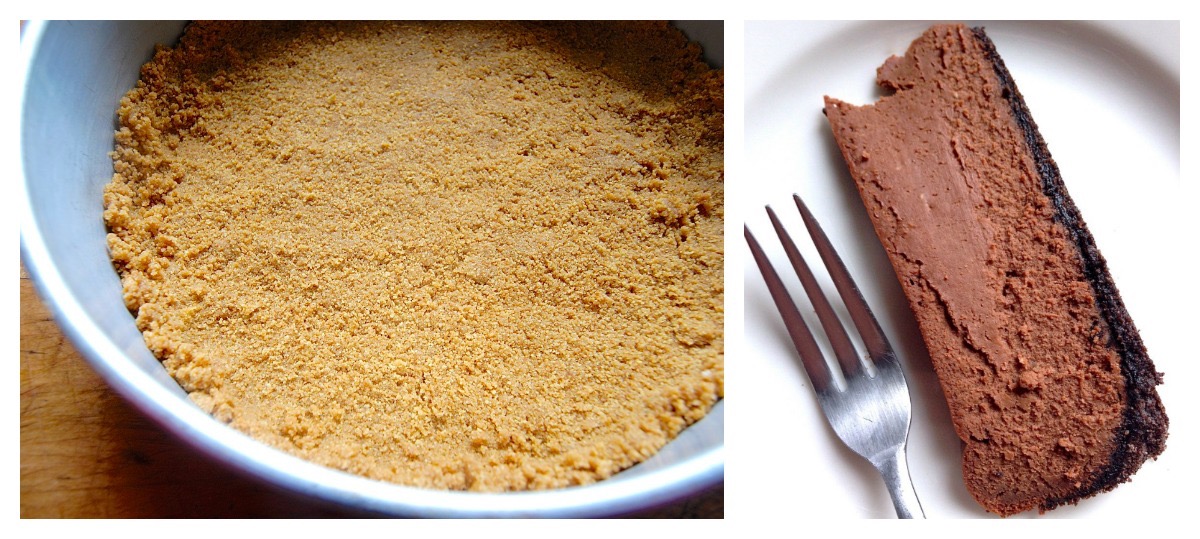 Graham cracker crusts, while typical, aren’t the only way to go. Try using other cookies – vanilla wafers, gingersnaps, even chocolate sandwich cookies – in place of the graham crackers called for in your recipe. Or go with a cake crust, as they do in Brooklyn.
