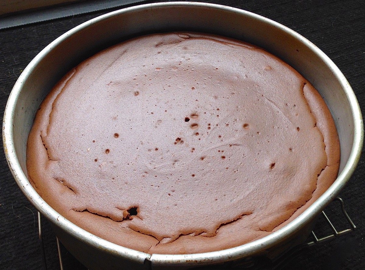 To help prevent a slumped center, run a thin spatula or table knife all around the edge of the cake as soon as you remove it from the oven, and prior to returning it to the oven to cool.