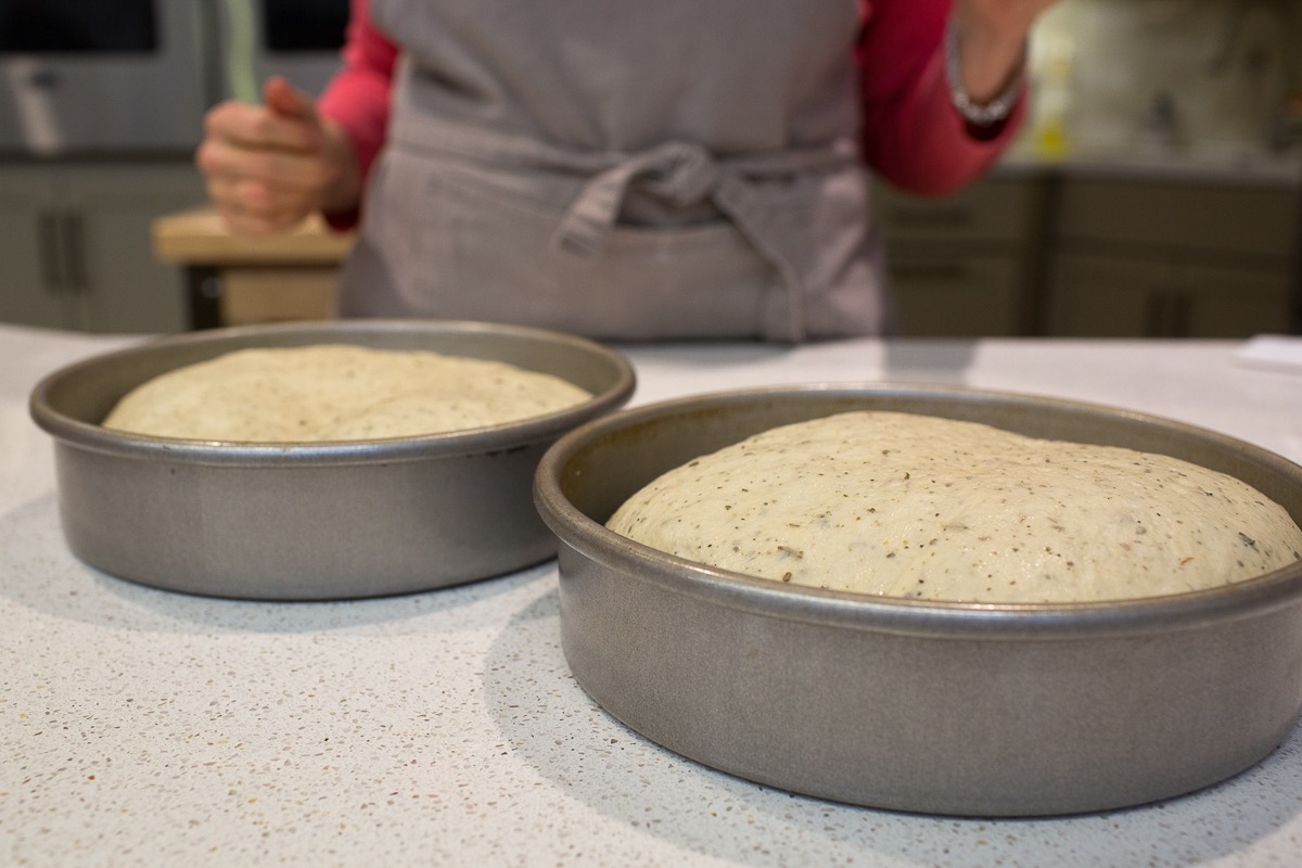 Place the rounds into the prepared pans, cover the pans, and let the dough rise for 45 minutes in a warm place.