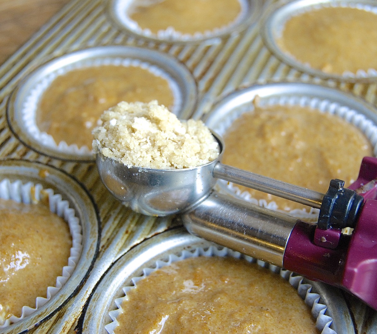 Well, there's that helpful tablespoon cookie scoop again! A heaping tablespoon scoop of streusel topping is the perfect amount for each muffin.