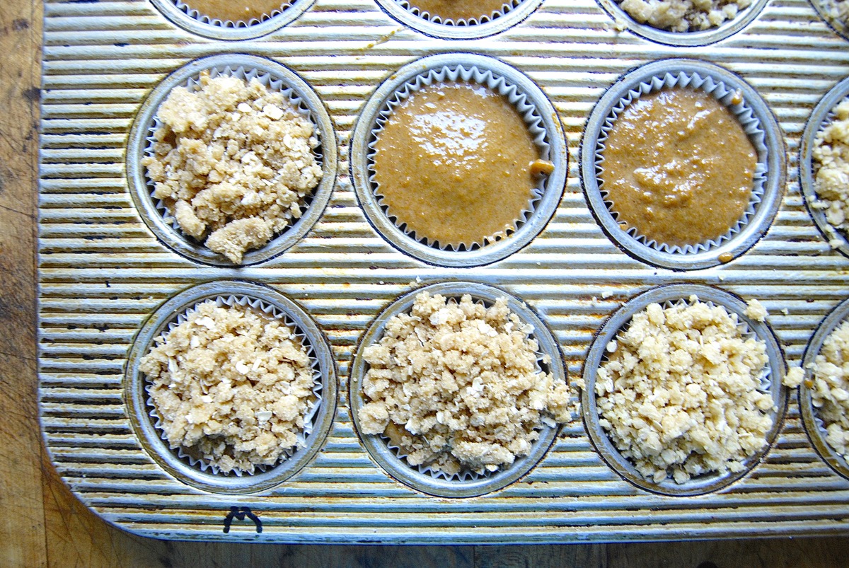 The four muffins on the left are 100% whole wheat; the two on the right, 100% all-purpose flour. You can still see a very slight difference in streusel color — but not enough to alert anyone that these are whole wheat, right?